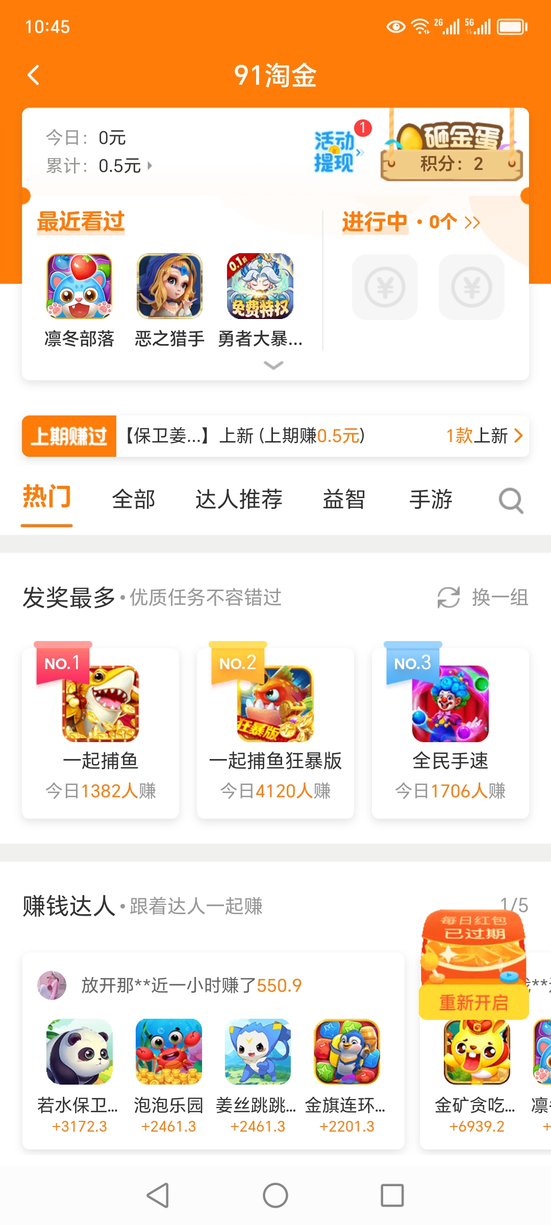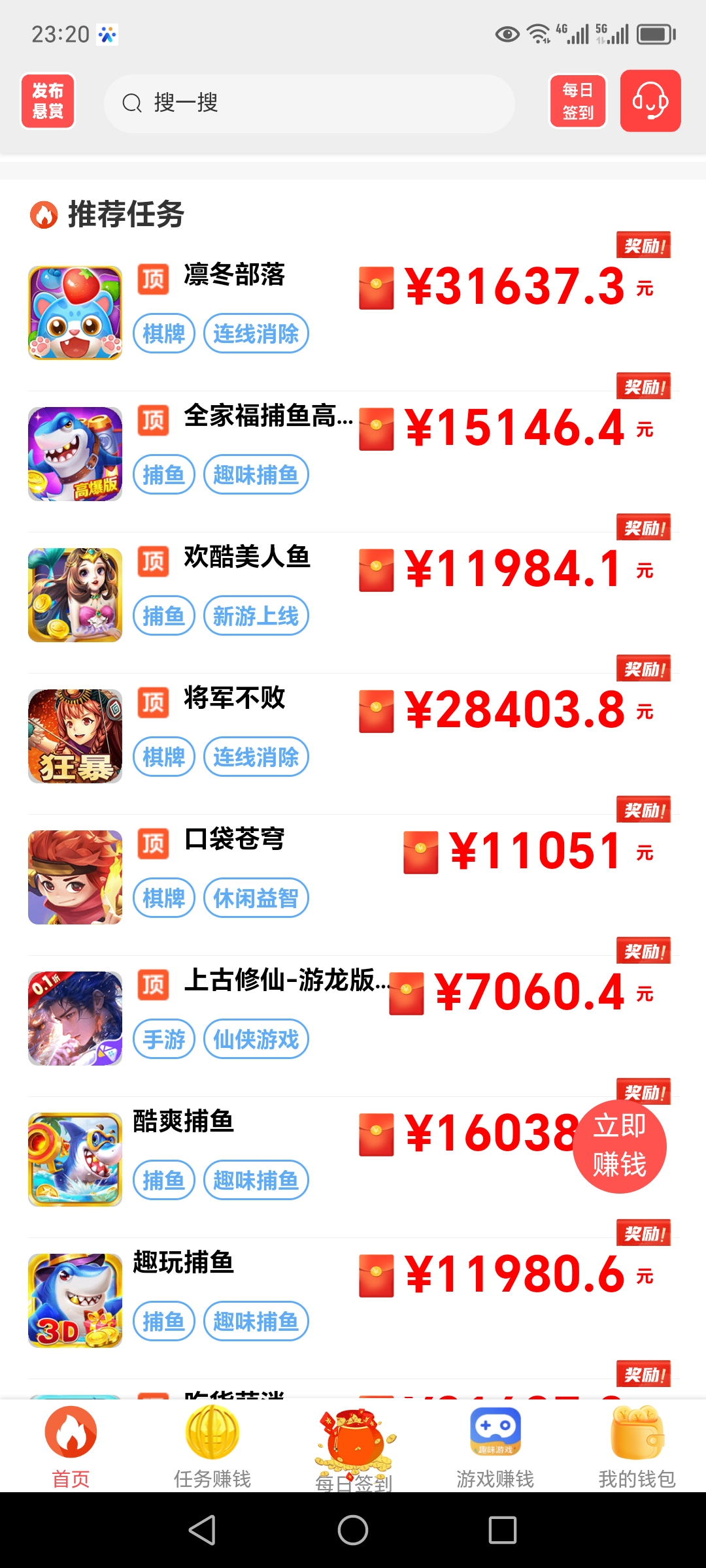 5、游戏试玩:平台内有几百款小游戏,每款游戏都有上千的赏金